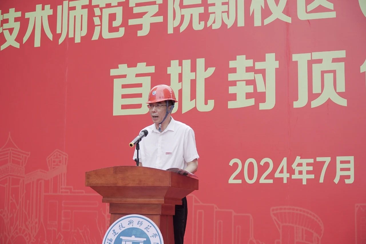 校长吴克寿代表学校致辞。他向关心支持学校事业发展的各界人士表示诚挚的感谢,向拼搏奋战在建设一线的全体建设者致以崇高的敬意。他指出,首批八栋楼的封顶,标志着新校区建设取得了阶段性成果,为新校区如期投入使用打下了坚实基础,希望施工单位和全体施工人员保持干劲、安全施工,确保工程如期竣工。他强调,全校上下要深入贯彻落实党的二十届三中全会精神,聚焦教育、科技、人才“三位一体”融合发展,持续增强“发展等不起”的责任担当,紧握“机遇不等人”的奋进之笔,与福清市委市政府通力协作,完成“我们需要你们,你们就是我们”的双向奔赴,为新发展阶段新福建建设,奋力谱写全面建设社会主义现代化国家福建篇章作出新的更大贡献。