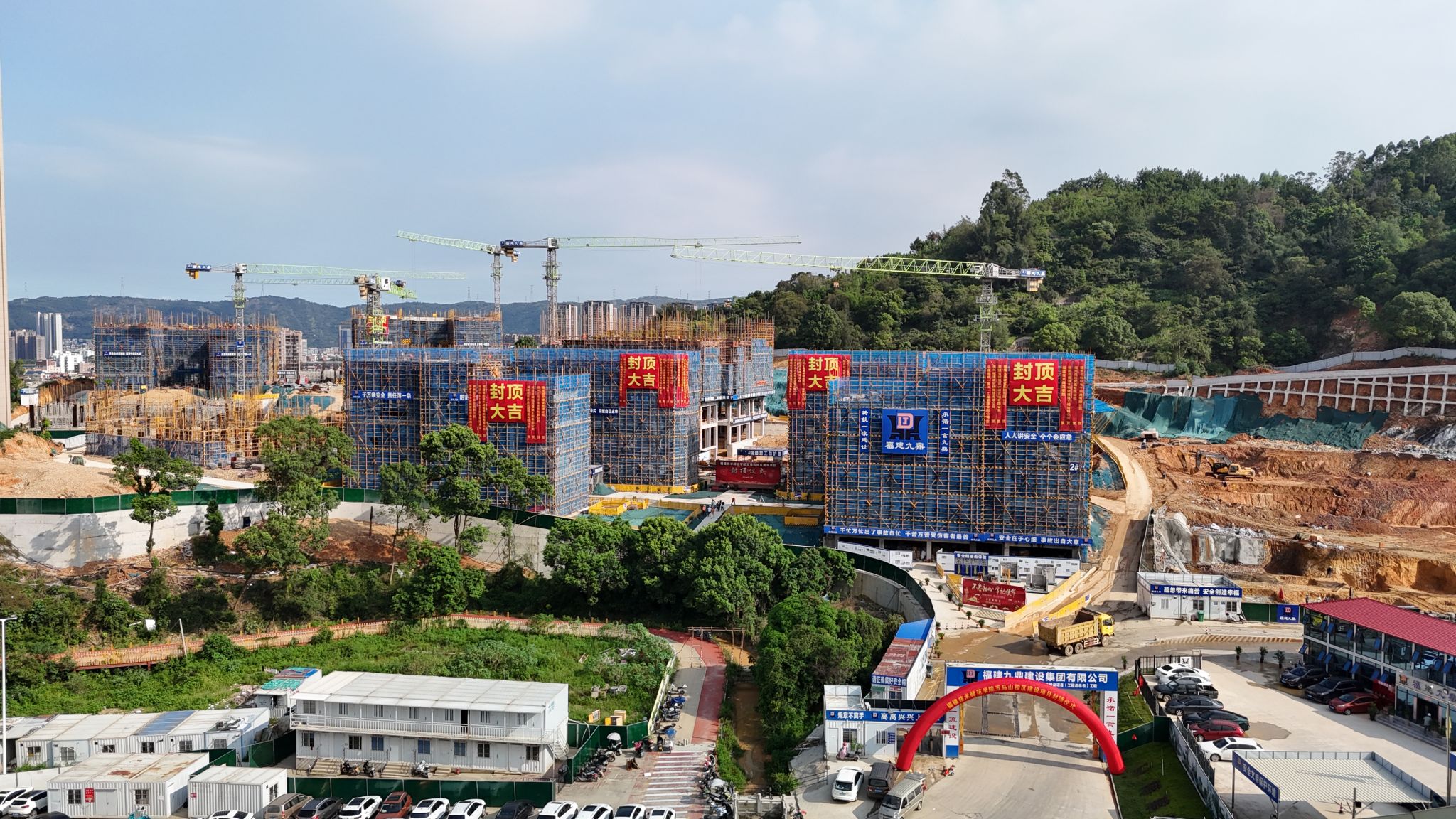 新校区(五马山南面片区)建设项目占地249亩,总投资11.8亿元,计划建设学术交流中心、教学楼、实训教学楼、图书馆等,总建筑面积约15万平方米,于2024年1月开工。目前,2#、3#、9#、15#、16#、17#、18#、19#楼已完成封顶,主体工程桩全部完成;4#、5#楼基础完成,7#、10#楼结构施工至五层,8#楼结构施工至三层,11#楼基础底板完成,13#楼基础承台完成,14#楼架空层完成;边坡挡墙及围护桩、框架锚索完成了80%,整体施工量已经过半。